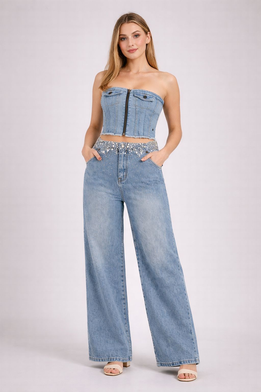 Cepli Fermuar Detaylı Kot Büstiyer