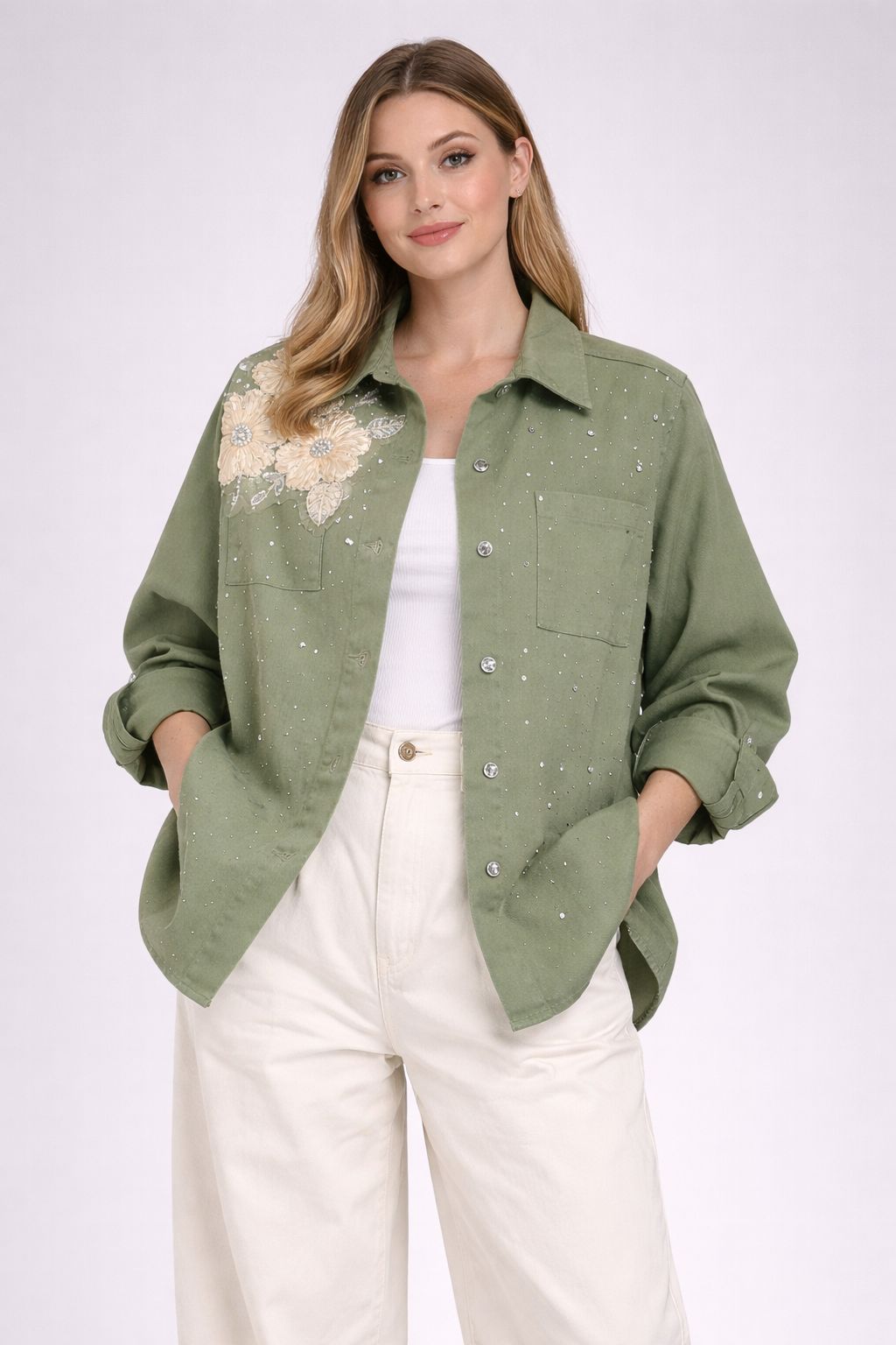 Çiçek Detaylı Taş İşlemeli Ceket